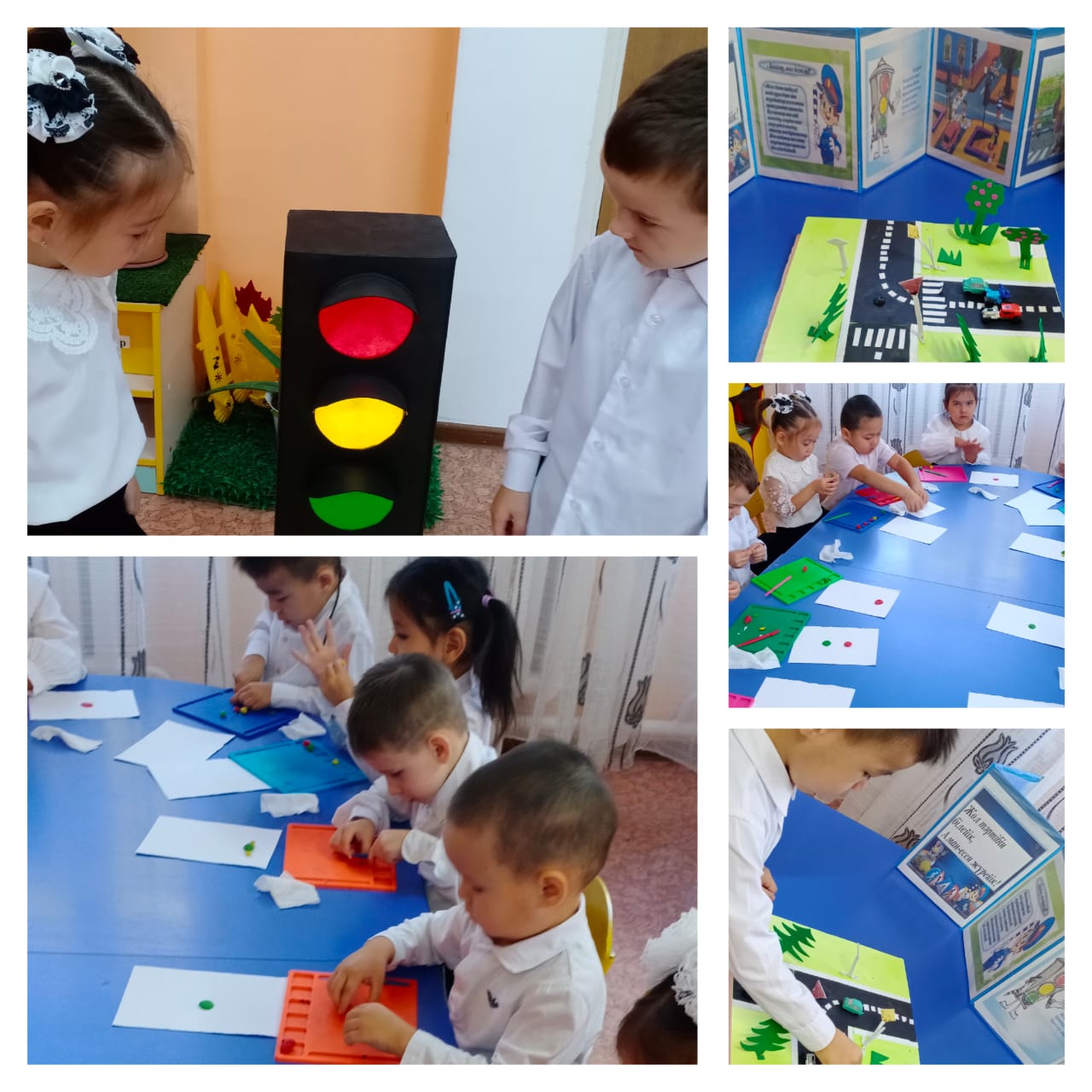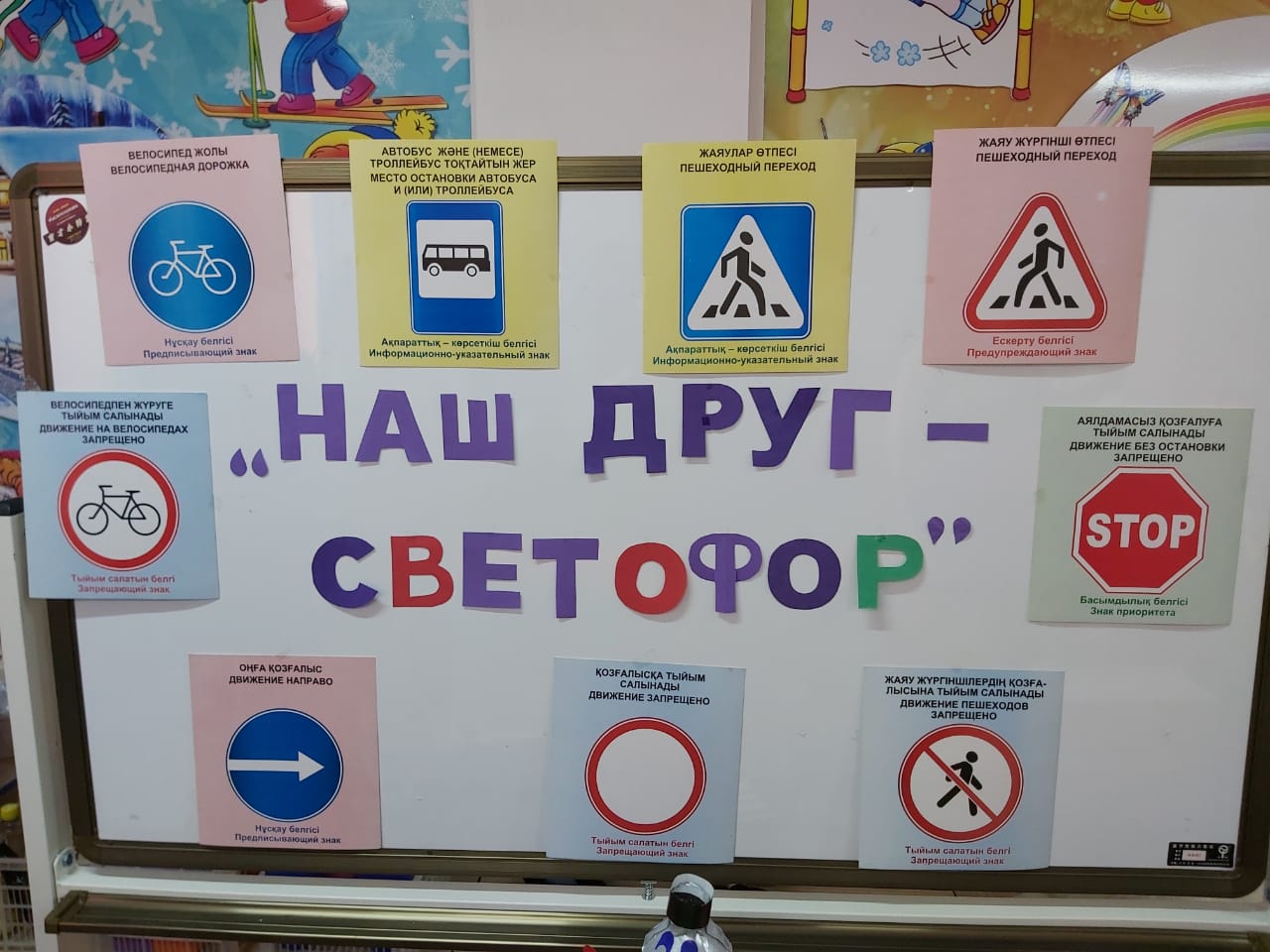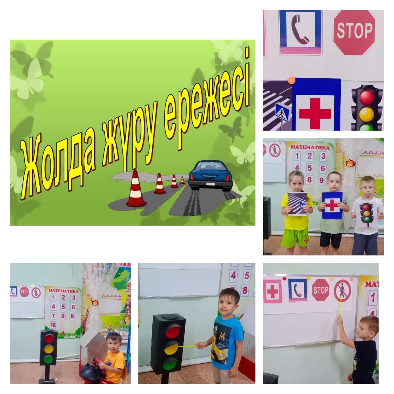 Мақсаты: Балалардың сөздік қорын дамыту. Ойын арқылы сабақтың мазмұнына қарай балалардың жолда жүру ережесі туралы алған білімдерін тиянақтау. Жол белгілерін айыра білу дағдысын қалыптастыру, есте сақтауға дағдыландыру.