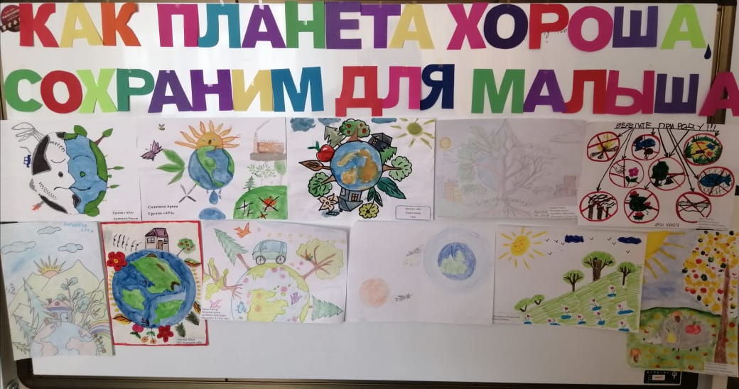 Выставка детских рисунков на неделю экологии на тему:«Как планета хорошо, сохраним для малыша»