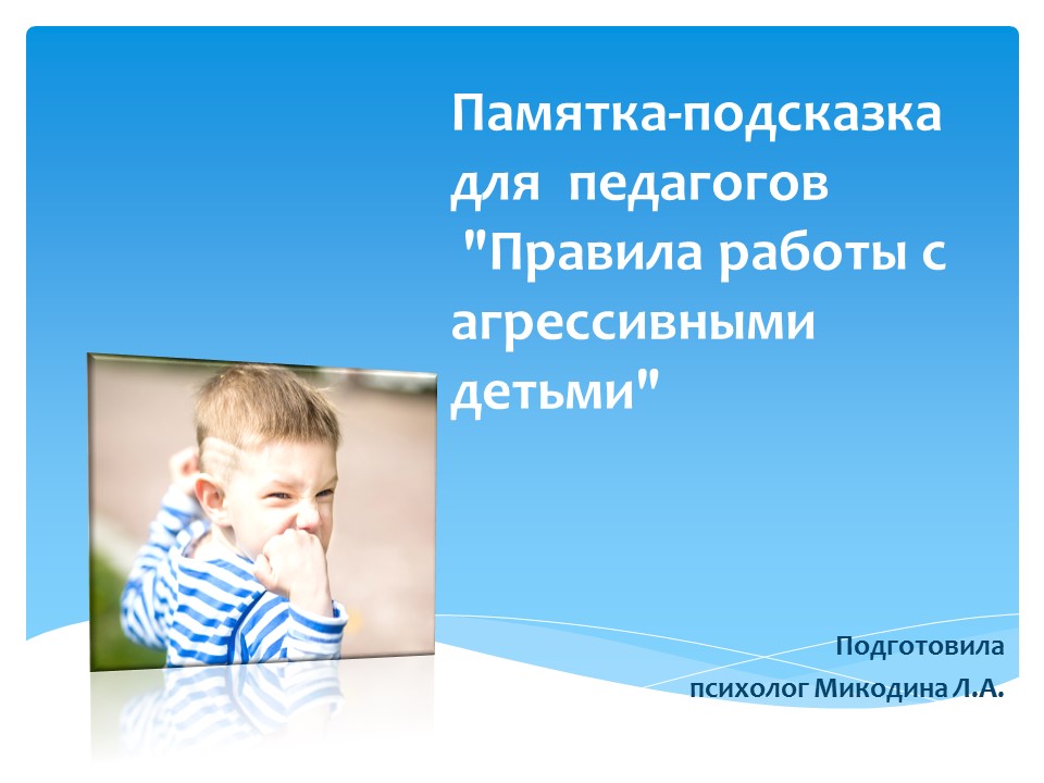 Памятка-подсказка для педагогов"Правила работы с агрессивными детьми"