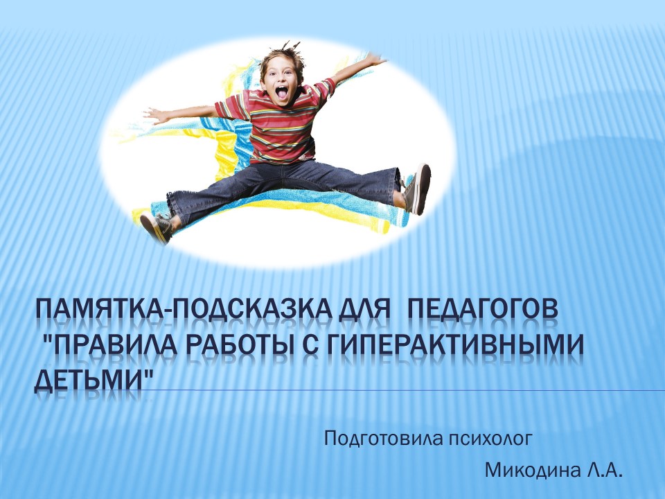 Памятка-подсказка для педагогов "Правила работы с гиперактивными детьми"