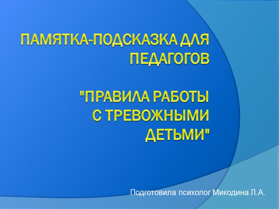 Памятка-подсказка для педагогов "Правила работы с тревожными детьми"